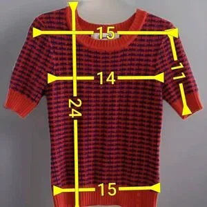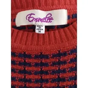 Emmelee Women Red Blue Geometric Pattern Knit Shortsleeve Sweater Size M