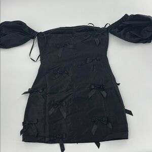 Hutch Black Off-Shoulder Dress whimsigoth bows feminine LBD valentine S NWT
