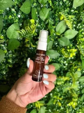 15% Vitamin C + Caffeine Energy Serum in brown. Brightens and firms skin while reducing puffiness. Lightweight formula absorbs quickly for energized, refreshed skin.