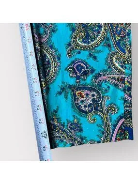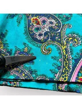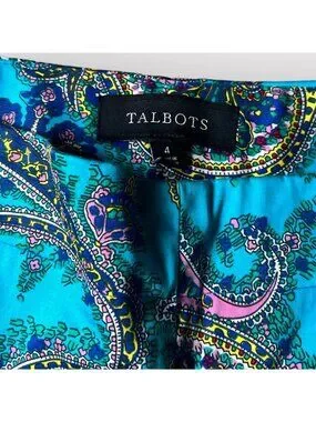 Talbots capri pants, paisley print pants, turquoise cropped pants, blue pants, slim fit ankle pants, stretch cotton capris, summer casual pants, resort wear bottoms, boho trousers, lightweight travel pants, blue patterned capri, straight pants, colorful pants, size 4 pants, vibrant pants, festive pants