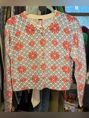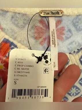NWT Free People Nocturnal Patterned Cashmere Cardi - prep combo blue - small