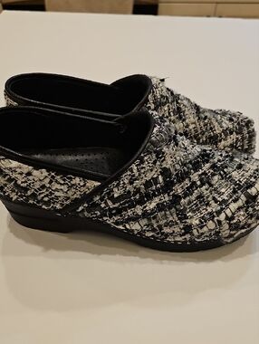 Sanita Danish Black and White Tweed Slip-On Clogs W/back Women's Size 41