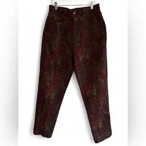 Vintage Bill Blass Floral Straight leg Jeans in Burgundy and Olive