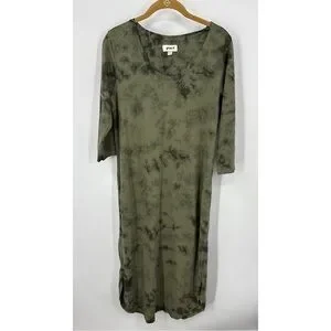Pact Far Out T-shirt Olive Tie-Dye Women's Dress L