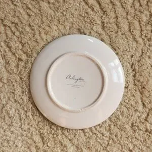 Camembert Des Paturages plate by Arlington Designs measuring 6 1/2" in diameter. Vintage style featuring a reproduction of French cheese label Camembert des Pasturages. Dishwasher and microwaveable.
