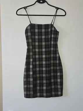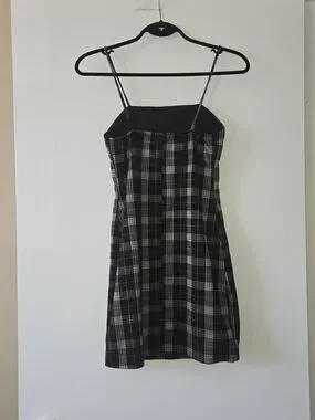 🎀Eclipse Black and Tan Plaid Mini Dress