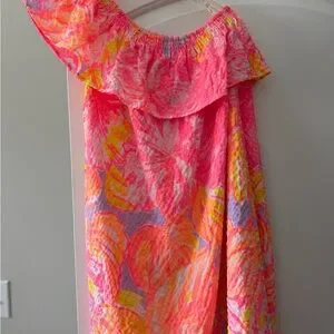 Lilly Pulitzer Neon Pink One-Shoulder Ruffle Dress with Multicolor Floral