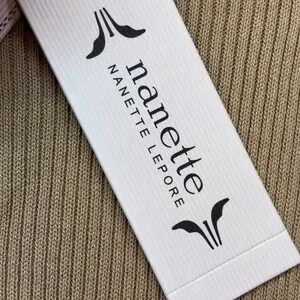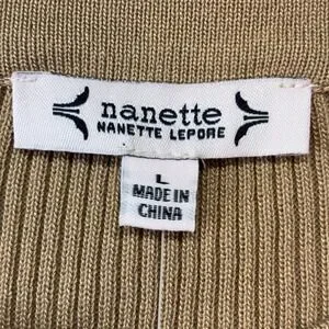 Elevate your wardrobe with this chic Nanette Nanette Lepore top, showcasing a sophisticated camel ribbed knit. Intricate crochet detailing adorns the sleeves, adding a unique textural contrast and a touch of artisanal charm. The classic crew neckline and elbow-length sleeves create a flattering silhouette perfect for layering or wearing on its own.