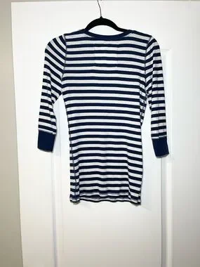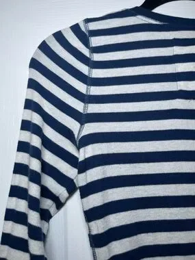 Y2K Vintage Abercrombie & Fitch Women’s Blue & White Striped Henley Size Large