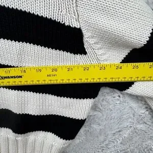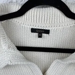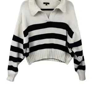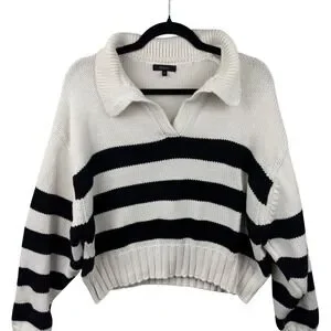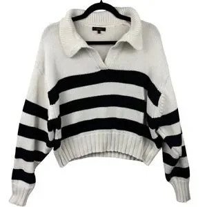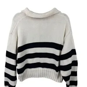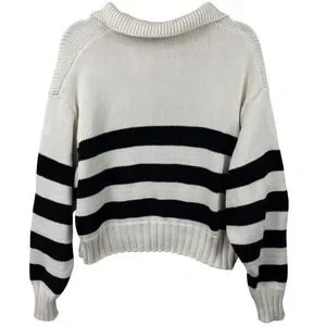 Quince Cropped Polo Sweater Womens Medium Ivory Black Striped Cotton Preppy