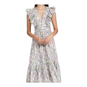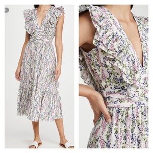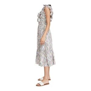 NEW with tags BY TIMO Delicate White Floral Ruffle Sleeve V Neck Midi Dress