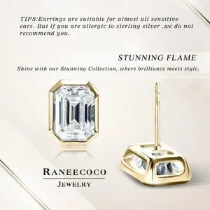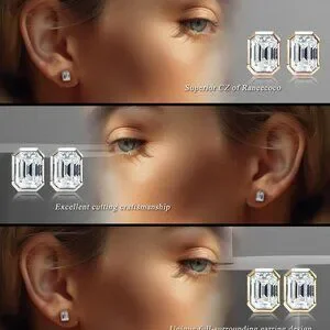 Features: Stunning emerald-cut cubic zirconia stones set in a full surrounding sterling silver setting. Lightweight and comfortable, with a secure push back closure perfect for daily wear or special occasions.