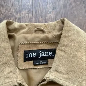 This stunning Me Jane jacket features a buttery soft tan suede shell adorned with delicate multi-colored floral embroidery on the front panels. Its structured silhouette and point collar offer a polished yet "effortless" retro look. Perfect for transitional spring/fall layering, this piece fits beautifully into the current "Western Gothic" and "Coastal Cowboy" trends. Includes a smooth front zipper closure and clean-finished cuffs.