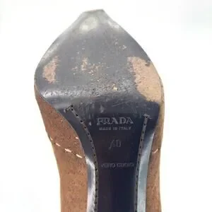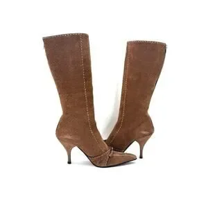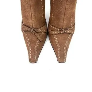 Vintage Prada Brown Suede Bow White Contrast Stitch Knee High Pointed Toe Boots 40