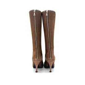 Vintage Prada Brown Suede Bow White Contrast Stitch Knee High Boots 40