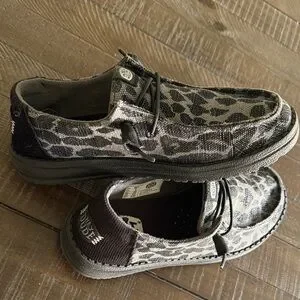 Hey Dude Women's Slip-On Flats in Gray Leopard Print