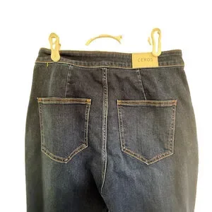 Ceros Jeans Dark Wash Denim High Rise Flare Leg Wide Leg Bell Bottoms Western Boho Minimalist Soft Stretch Modal Denim Size 9 Size 29 Trousers Casual Classic Everyday Preloved Sustainable Fashion Bootcut Retro 70s Style