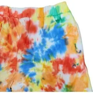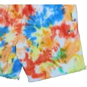 ~ Tye dye print that includes colors such as orange, green and blue