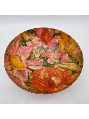 MCM Fiberglass Bowl 11" Diameter Floral Pink Orange Design Vibrant Groovy