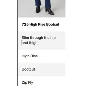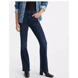 Classic Levi's 725 high rise bootcut jeans in a flattering dark wash.