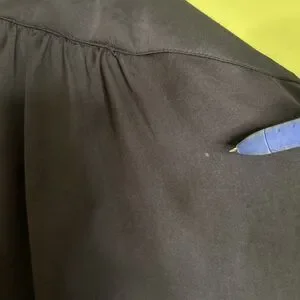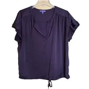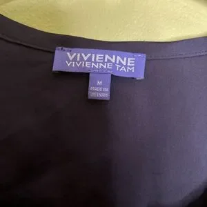 Vivienne Tam Womens size Medium Top Black Blouse Tie Waist FLAW-spot