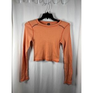 Wild Fable Orange Ribbed Long Sleeve Crop Top Contrast Stitching Womens Small S