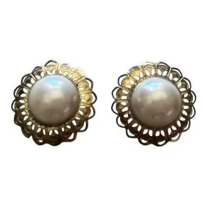 Timeless and elegant vintage clip-on earrings by 1928, featuring luminous faux pearls set in a gold-tone, art deco–inspired design. Classic statement earrings with a glamorous old-Hollywood feel, perfect for dressing up a simple outfit or adding vintage charm to an evening look.
