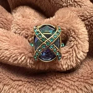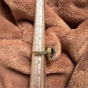 SZ 7 | Heidi Daus Vintage Gold, Teal, & Blue Oval-Cut Crystal Diamond Ring