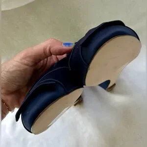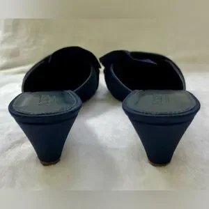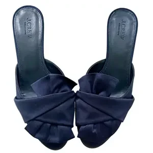 J. Crew Collection navy blue satin mules/wedges.