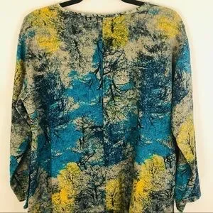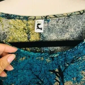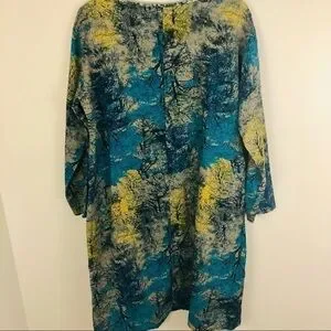Super cute and comfy long sleeve artisan one of a kind tree print maxi flowy cocoon dress with pockets, one size fits most. Jewel tone coloring pattern. Tag says XXXL.