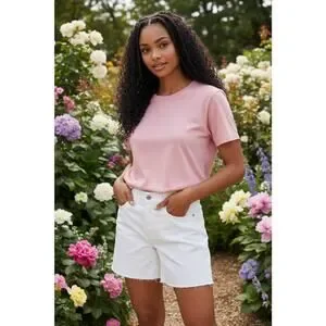 New Eddie Bauer Women Size 6 White Stretch Cotton High Rise Cutoff Denim Shorts