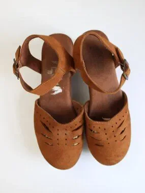 Cliffs by White Mountain Cassidy Brown Faux Suede Heeled Cushioned Clogs sz 5.5