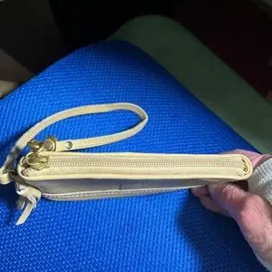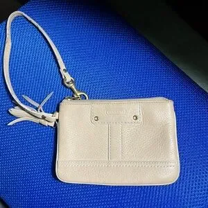 Authentic Coach leather wristlet in a versatile beige/cream color.