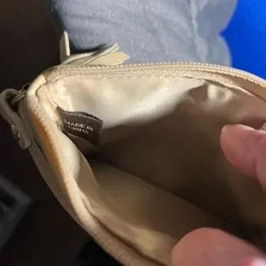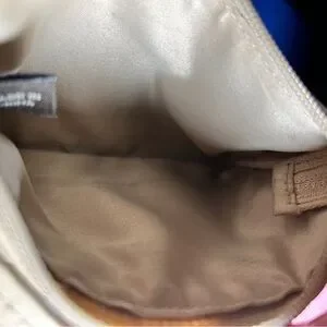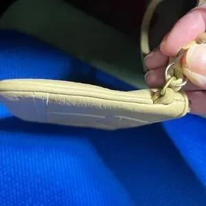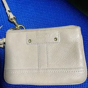 Coach Beige Leather Wristlet Clutch Zip Pouch Small Bag