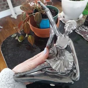 Add a touch of elegance to your home with this stunning silver ballerina sculpture. Perfect for art lovers and dance enthusiasts. Perfect for a table or mantle.