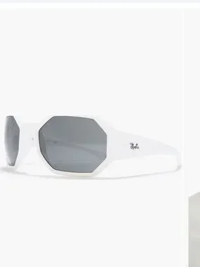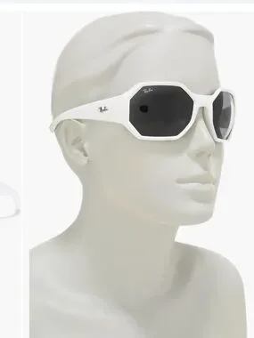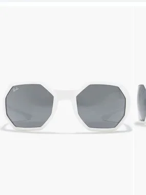 NWT Ray-Ban White Octagon Wrap Around 59MM Lens Sunglasses