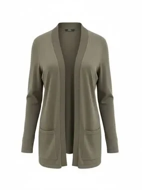 Designed in a versatile olive green, this cardigan features a soft knit fabric with a comfortable, slightly heavier weight for added warmth. The open-front silhouette makes it easy to layer over tees, blouses, or dresses.
