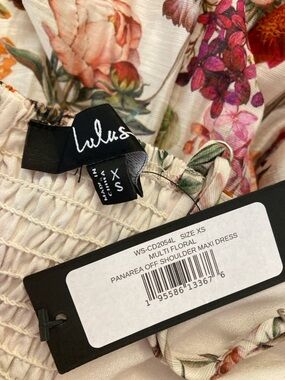 LULU’S Panarea Botanical Floral Maxi Dress NWT. Size Xs. Lined, zip & elastic back. Beautiful fabric! Bust 13.5”, waist 12”(elastic at back), length 57”✨Approx (M1)