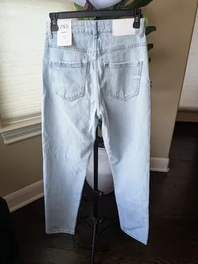 ZARA Light Wash High-Rise Straight Ankle Mom Fit Jeans