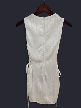 Figure-hugging sleeveless dress in white with textured knit detailing. Lace-up sides create adjustable fit and a stylish, flirty look. Soft stretch fabric for comfortable wear. Perfect for nights out or special occasions.