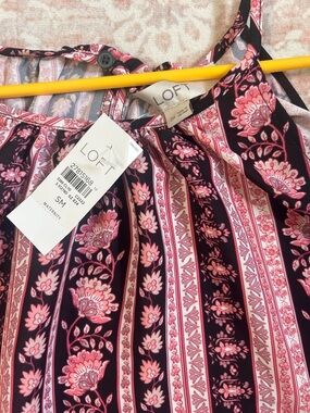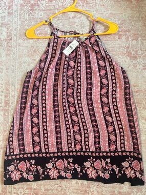 NWT Halter-style sleeveless cami with tie neckline. Vertical stripe and floral pattern. Contrasting floral border hem. Lightweight, flowy fit for warm days. All proceeds purchase much needed supplies and hygiene items for underserved elementary students at the school where I interpret. Bundle discounts 😊 Thank you for looking!