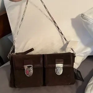 NWT Banana republic Brown Suede Dual Pocket Shoulder Bag with Silver Hardware