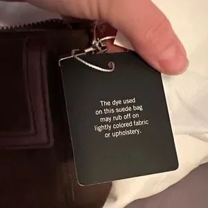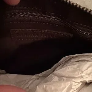 Smooth brown suede body with a slim silhouette. Front flap pockets and subtle hardware details. Detachable silver-tone chain strap. Sleek, modern look for everyday wear. Never carried nwt! Offers considered 😊