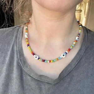 Homemade beaded necklace that I made myself. I have a huge hobby of making beaded jewelry and I was hoping to share it with everyone 😊. The necklace is roughly 17.5 inches long. It has beautiful colorful beads. I really hope whoever buys it enjoys it fully ❤️😊❤️😊❤️😊 message me for any questions 😇