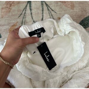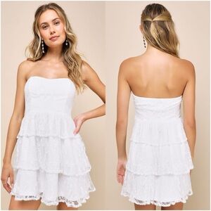 LULU’S Sweet Perception White Lace Strapless Mini Dress