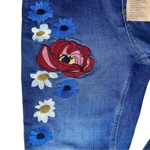 Chic blue jeans with vibrant floral embroidery. Perfect for adding flair to any outfit.