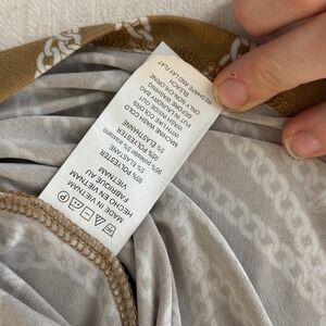 Michael Kors Women Medium Tan Chain Link MK Logo Faux Wrap V-Neck Blouse Top