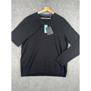 Ted Baker Sweater Mens 2XL Black Wool V Neck Textured Detail Lightweight NWT