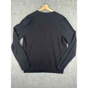 Features: Lightweight wool-blend knit designed for softness and comfort, versatile solid black color for casual or smart casual outfits, and styling suitable for layering over shirts or tees in cooler weather.