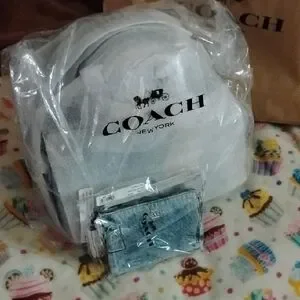 Coach Denim Rowan with charms and denim Wristlet with charms SET factory wrapped.